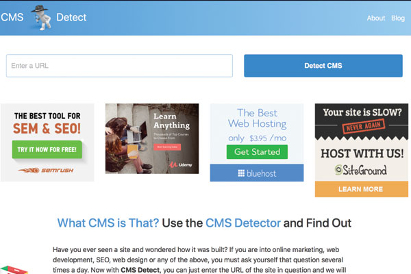 CMS Detect allows you to see the Content Management System used to create your website. Although originally created solely for WordPress to detect plugins, themes, etc., CMS Detect has expanded their services to evaluate most content management systems. There are multiple content management systems and frameworks that developers use that this tool can detect.
