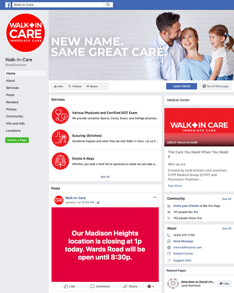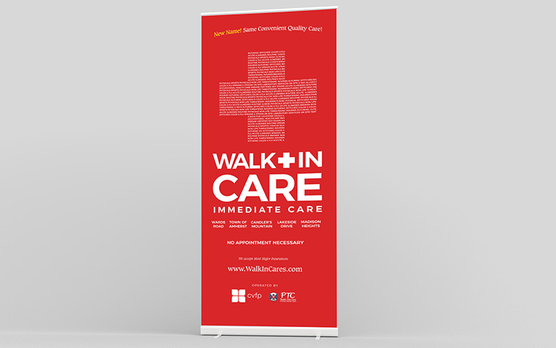 We were excited to hear the news that CVFP Medical Group (CVFP) and Physicians Treatment Center (PTC) were joining forces to create an entity that would focus on the immediate care needs of the Greater Lynchburg area. We were even more excited to be a part of the process, especially because we love building brands from the ground up! Keep reading to learn more about our branding process and the steps we took to introduce Walk-In-Care to Lynchburg and the surrounding areas.