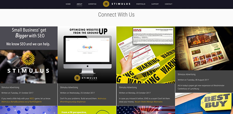 At Stimulus Advertising we believe that social media should not be the whole of your media usage, but rather a portion of a cohesive multi-media solution to better your interaction and image with consumers and colleagues. Our philosophy is simple. We follow what we like to call the "Four E's of Social Media" on all social media accounts.